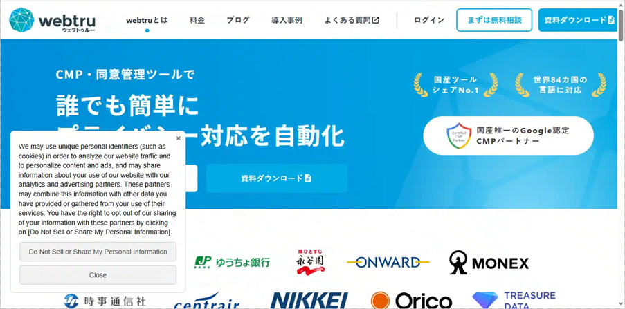 webtru(ウェブトゥルー)は、アメリカ カリフォルニア州のプライバシー法 CPRA(California Privacy Rights Act) に対応しました。