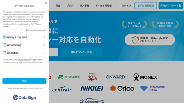 近年、世界各地でプライバシー関連規制が強化されており、国や地域ごとに求められる対応が異なっています。地域別出し分け機能を活用することで、複数の国からのアクセスが想定されるサイトにおいて、同意管理の正確性を高めることができます。
